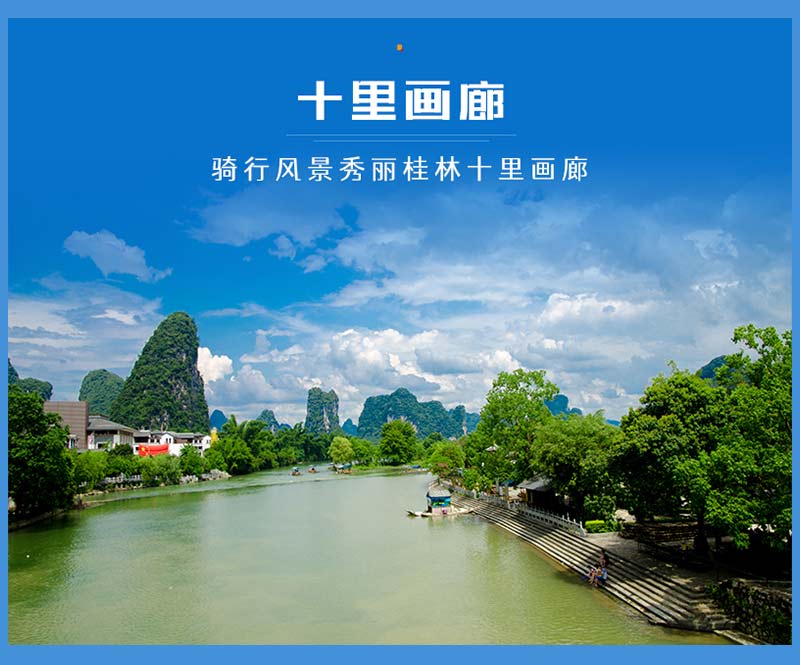 阳朔十里画廊,不是一个景点,而是一条把阳朔最美景点连接起来的风景线,在阳朔城南的321国道线,出阳朔县往月亮山方向的一段景观带,因沿路两侧群山连绵、风景秀丽、如诗如画,故被称为阳朔十里画廊。(沿途部分景区收费,如进景区门票自理)