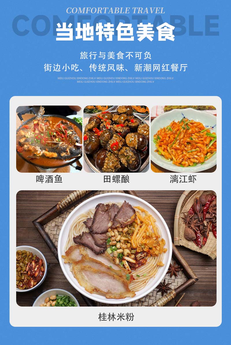3)门票:漓江游船已官方实际为准,遇龙河竹筏50元/人(5-8人多人竹筏),龙脊梯田门票80元;门票价格供参考以景区实际规定为准。