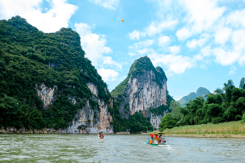 漓江是桂林风光的精华,素有“江作青罗带,山如碧玉簪”之美誉;2013年,美国CNN就把它评为全球最美15条河流之一。漓江两岸的山峰伟岸挺拔,形态万千,石峰上多长有茸茸的灌木和小花,远远看去,若美女身上的衣衫。江岸的堤坝上,终年碧绿的凤尾竹,似少女的裙裾,随风摇曳,婀娜多姿,江水依山而转,景致美不胜收,可观奇峰倒影、碧水青山、牧童悠歌、渔翁闲钓、古朴的田园人家,享受“舟行碧波上,人在画中游”的美好情境。