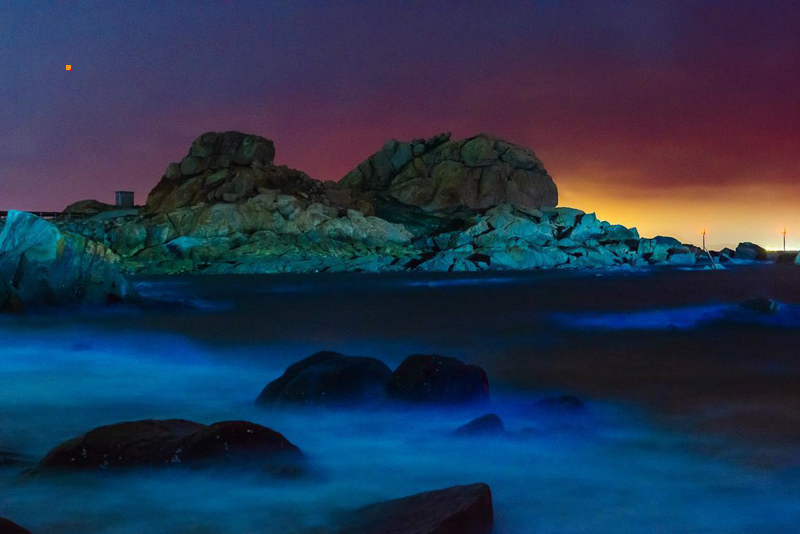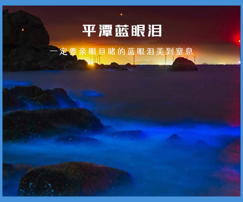 - 晚上 自由结伴打车前往邂逅蓝眼泪,追泪建议:龙王头/东美村/坛南湾/长江澳等(注:蓝眼泪属于概率现象,有很大可能不出现,出现的时候有可能堵车,需保持好平常心);或者前往人民广场/原汽车站的平潭夜市品尝美食。