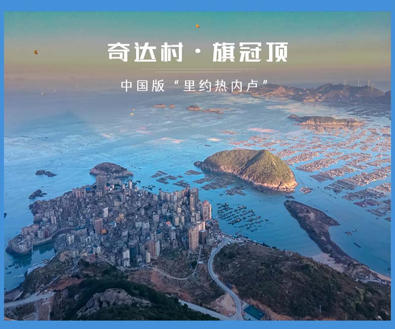 - 上午  前往旗冠顶,登顶需爬约1800级台阶,单程约1小时,巴西里约热内卢基督山同款角度俯拍渔港大片;徒步下山移步换景,每一个角度都可以美出不一样的颜色。(如不想爬山的朋友可以直接去奇达村逛)。