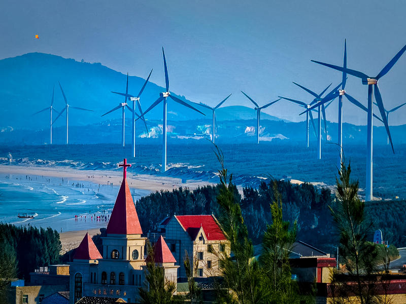 - 上午  壮观的长江澳风车田绵长的沙滩上伫立着巨大的风车,这里的沙滩是平潭三大海滨沙滩之一,可在广阔无垠的沙滩上自由奔跑!