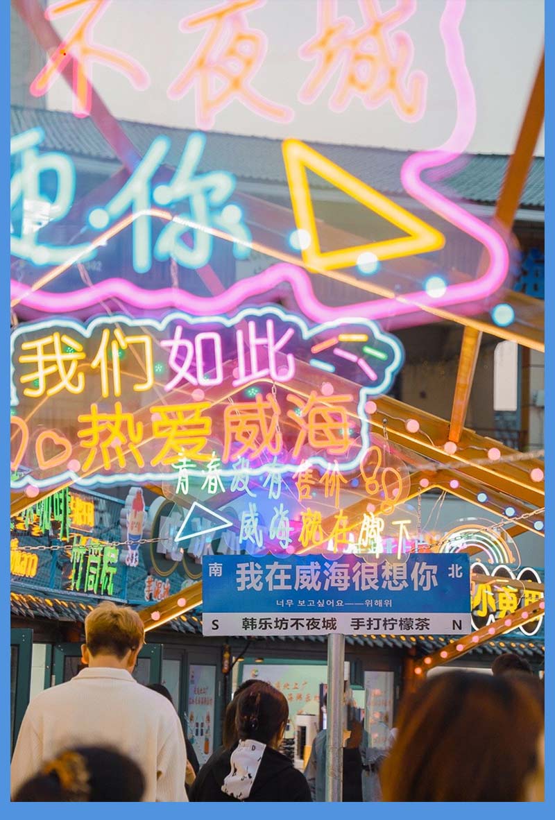 - 晚上|前往酒店安排入住。之后自由结伴逛威海海岸线夜景:悦海公园(灯塔)、威海公园(威海之窗)、幸福门等;还可以品尝韩乐坊/欧乐坊夜市夜市美食!