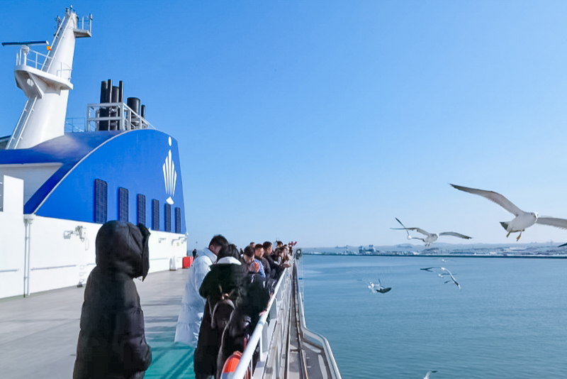 - 全天|根据轮渡时间前往码头排队乘海上轮渡。开启7个小时横跨渤海湾海上之旅至威海,途可以欣赏到渤海湾外海海景、丰富多彩的海鸟以及美丽的海湾风光,体验不一样的海上之旅!在船行进过程中还可以喂海鸥,和海鸥近距离接触!
