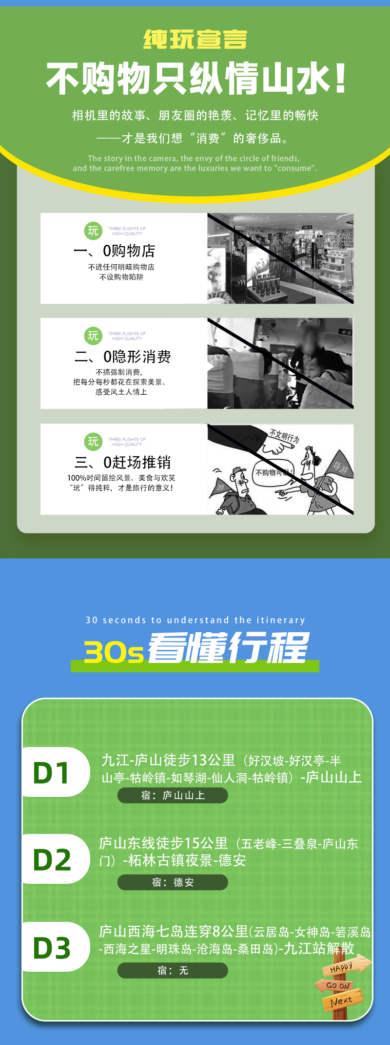3)多日活动(N日)以活动前N+2日12:00为准,之前退出可申请退费、改期或改线路(差价多退少补),之后退出请恕费用不退;