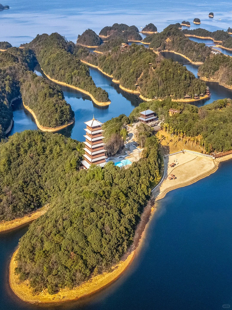 云居岛:主打东方禅意的首登岛屿。标志性建筑是 38 米高的 7 层云居塔,可登高俯瞰湖岛全景;还有西海阁、荷花水榭、鱼骨门等打卡点。