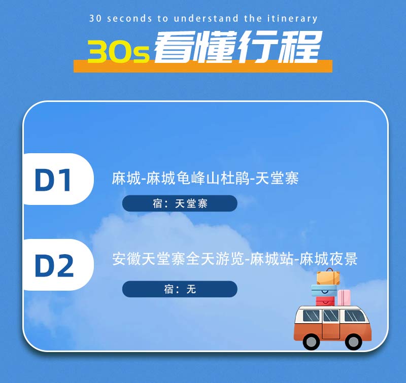 - 傍晚适时集合前往麻城,约20点到达。可根据自身购买的火车票时间直接返回,或将行李寄存到火车站,继续游览麻城市区夜景!