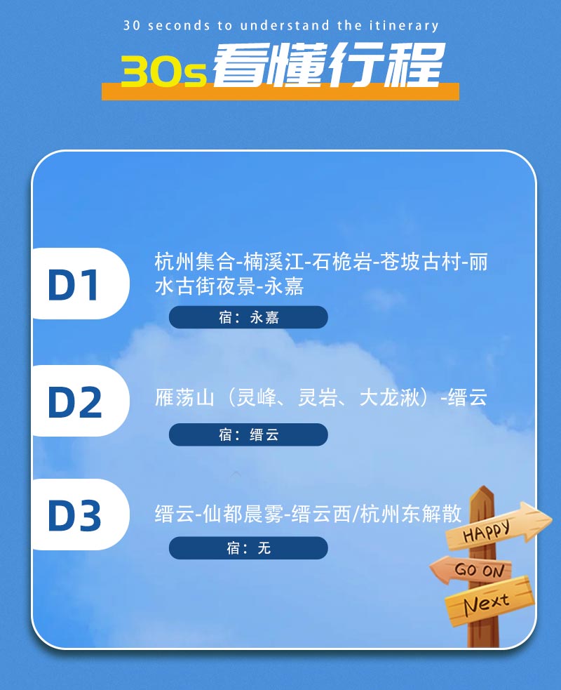 2)适时集合,我们前往缙云西,有买此返程的朋友可以在此下车返程;我们大约15:30到达杭州东解散,愉快行程结束,期待下次远行。