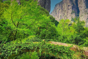 - 之后游览【灵岩景区】,“雁荡冠天下,灵岩尤绝奇”,在此可以观赏精彩的【飞渡表演】。表演舞台不在平地,而在海拔200米的空中,世界罕见。很难想象,在天柱峰和展旗峰的峰顶拉上一条钢索,艺人们会给我们展现一场怎样的表演?看完演出,步行进入灵岩深处的卧龙谷,探小龙湫瀑布。寻找金庸名作《神雕侠侣》小龙女纵身一跃的断肠崖,体验百米玻璃栈道。