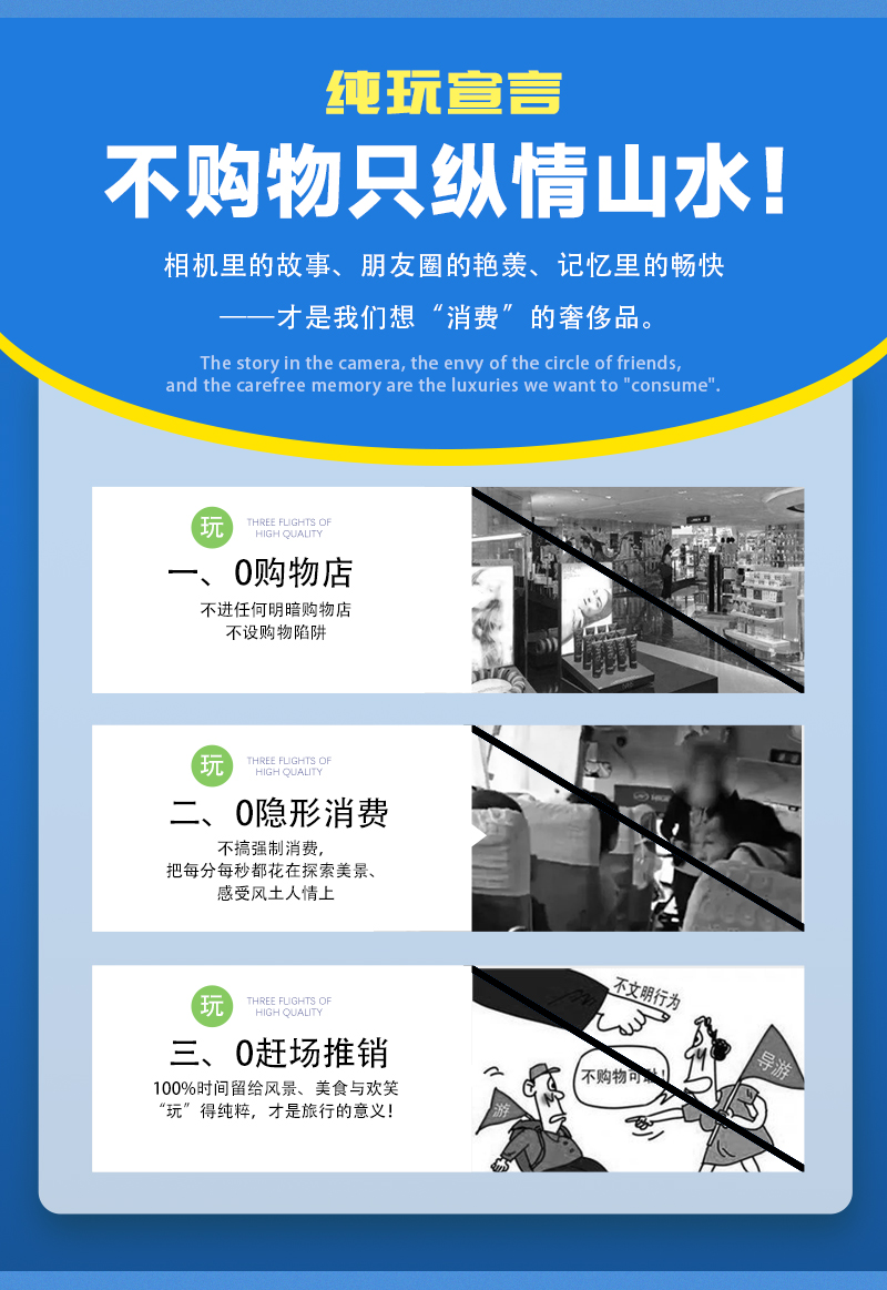 1)本活动属于户外旅行活动,纯玩,全程不进购物店,没有任何形式购物环节,领队也不作购物推荐,敬请谅解;同时本活动所有费用已明示(包括有可能您自愿自费的项目),无其它任何收费,请您仔细阅读费用包含和费用不含内容。