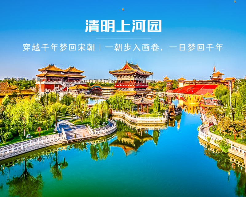 - 下午到达开封,游览【清明上河园】。景区是根据宋朝名画《清明上河图》为蓝本而建造的大型宋代文化实景主题公园,高度还原清明上河图布景,园内工作人员皆穿着宋代服饰,让人有穿越时空的感觉,除此之外还有精彩的场景演出和民俗表演 ,如包公迎宾、盘鼓踩高跷、斗鸡竞技、岳飞枪挑小梁王等,精彩纷呈。