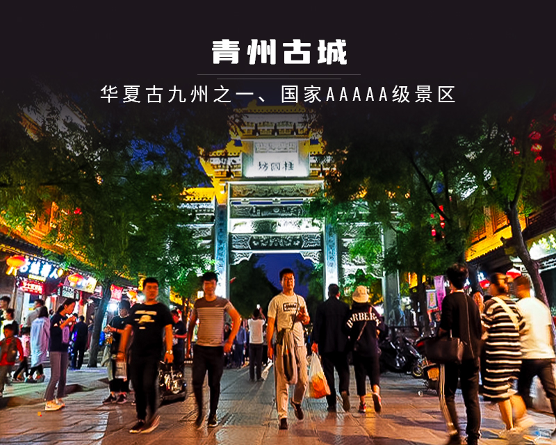 - 晚餐自由觅食,青州古城内各式小吃很出名哟,夜景也非常漂亮,适时集合前往酒店休息。