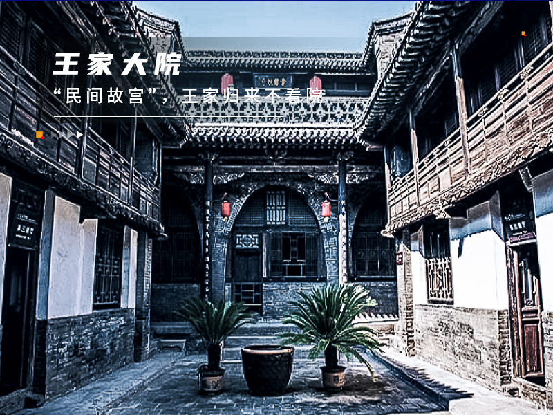 王家大院历经300年修建而成,气势和规模在晋商宅院里首屈一指。雕刻艺术精湛、空间格局大气是深深吸引游客前来参观的重要因素。由高家崖、红门堡组成,之间由细长的桥腾空连起,其余由无数四合院组合而成。高家崖是封闭式城堡建筑,承袭了中国古代前堂后室结构,到处可见精美的雕刻艺术。红门堡与高家崖东西相望,堡内石雕融南北风情于一体,是清代雕刻艺术的典范。