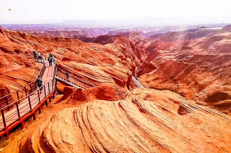 早餐后集合出发前往【靖边龙州波浪谷】,龙州丹霞地貌可与美国西部波浪谷相媲美,是一处摄影、探险、旅游的绝佳圣地。红色砂岩在风雨剥蚀下形态各异,一线天、波浪谷、水上丹霞景区让你惊叹于大自然的鬼斧神工。景区出口有各种具有陕西特色的小吃,如凉皮、凉面,味道都不错,大家自行探索品尝吧!