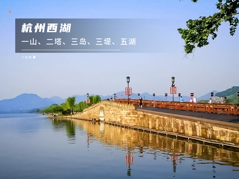 西湖是座落杭州西城的一颗光彩夺目的明珠,亲身体会苏东坡笔下“浓妆淡抹总相宜”的西湖景色。西湖风景秀逸兼具山水之胜、园林之美,景致秀美使人陶醉不已。西湖无疑是杭州之美的代表,很有名的“西湖十景”环绕湖边,自然与人文相互映衬,组成了杭州旅行的核心地带。游玩西湖可以步行、坐游船、乘电瓶车,也可以骑行。其中,电瓶车是方便省力的,环西湖有招手即停的游览车,线路正好绕西湖一圈;沿湖骑行浪漫又悠闲,西湖沿岸有不少租借公共自行车的点;若想坐船游览,湖边有近10个码头,有各种不同的船和线路,比较推荐乘船去湖中心的三潭印月,顺便在船上饱览西湖景色。