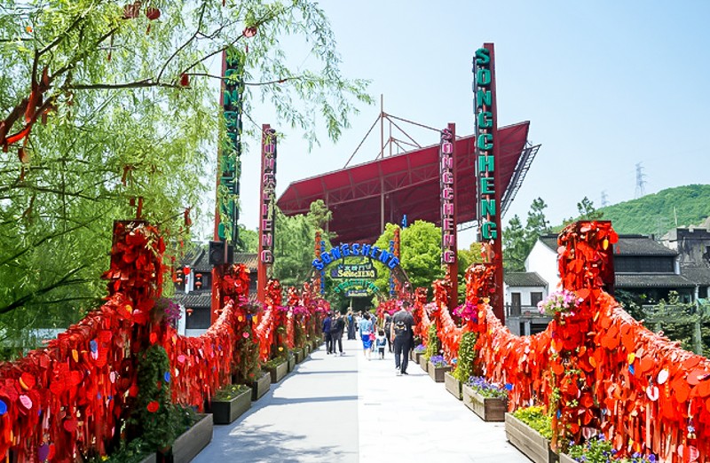杭州宋城旅游景区位于西湖风景区西南,是中国的宋文化主题公园。景区内的雪月街、风花巷、过眼街、烟云街、往事街,让你珍惜当下、拥抱每一次的风花雪月;宋城门、珍宝楼、天空树、时光树、相思树、云梯漫步、空中花园、天空之城、演艺广场等一步一景,穿越时空;徜徉在华灯街,看宋阁、情桥、廊桥、骑士桥与宋河交相辉映,美不胜收;在森林剧院偶遇莎翁,在悬崖剧院与风齐鸣。杭州宋城演艺王国,老少同乐,晴雨皆宜,是一个集演艺、旅游、度假于一体的网红打卡地。