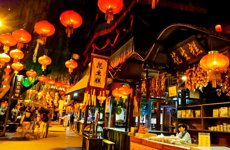 夜游西栅和白天是完全不同的感受。特别是坐着乌蓬船(西栅船游是不包含在门票内的,需要自行购票)泛舟河上,河面上是被灯光映照出彩色倒影的一座座古桥,顺着河道看两岸的古建筑在色彩斑斓的灯光中呈现出新的意境,新旧交替恍然如入两座古镇,一个是昨日的班驳,一个是今日的绚烂。晚饭可以在景区内解决,西栅里种类繁多的小吃,有特色的小店,饭馆,酒吧……来了你就不想离开,巷子里的小店您细细逛,河边找个小馆您边吃边聊,再叫一杯三白酒您慢慢品,找个最佳拍摄点拍摄绝美夜景,体验当地真挚的水乡民风。