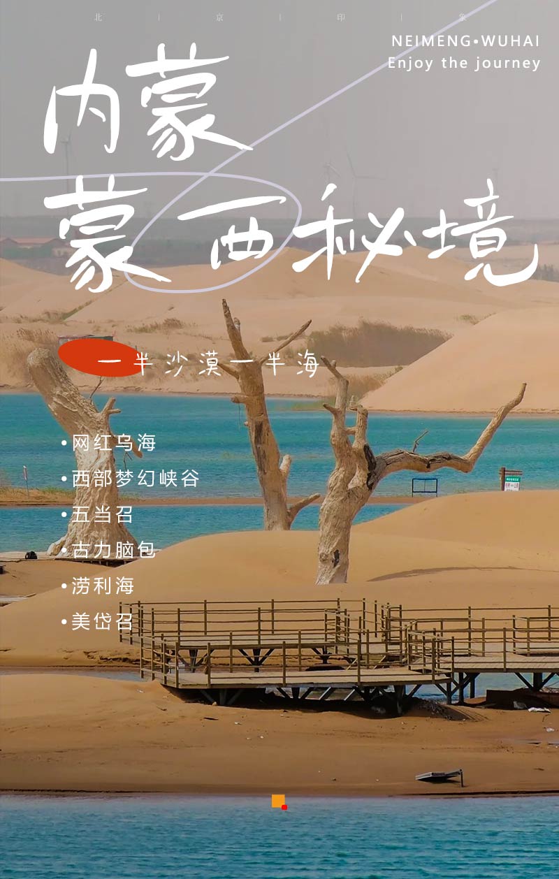 2)门票:西部梦幻峡谷门票60元+摆渡车15,乌海湖游船往返98(含往返游船+网红枯树门票+网红公路打卡),美岱召28元,五当召55元,;其他景点暂无门票费用,如遇临时收费自理。门票价格供参考,以景区实际政策为准;