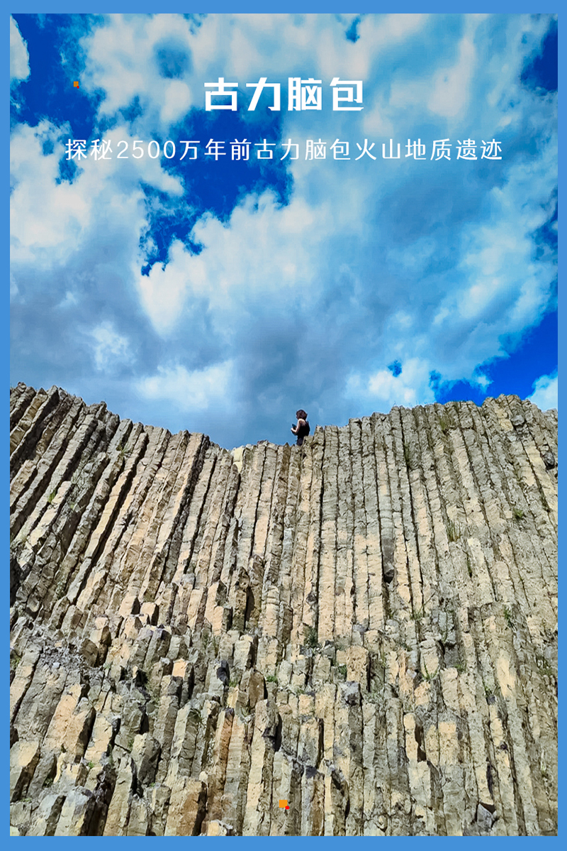 谷力脑包地质遗迹,位于乌兰察布市察哈尔右翼前旗土贵乌拉镇北。面积两万余平米的玄武岩柱形成于新生代晚第三纪中新世,距今大约2000万年。它是由基性火山熔岩喷发均匀,快速冷却收缩形成的六方柱状岩体。