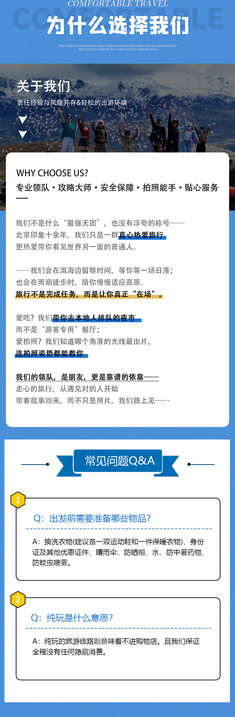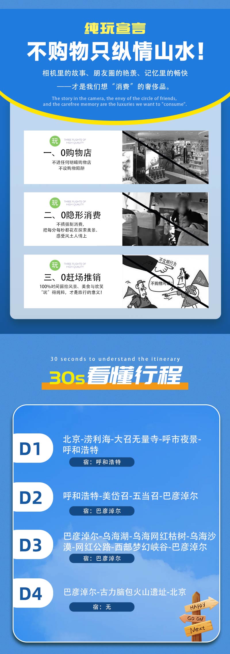 1)本活动属于户外旅行活动,纯玩,全程不进购物店,没有任何形式购物环节,领队也不作购物推荐,敬请谅解;同时本活动所有费用已明示(包括有可能您自愿自费的项目),无其它任何收费,请您仔细阅读费用包含和费用不含内容。