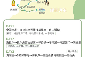 ★【交通】由于夏季呼伦贝尔旅游旺季,飞机票与火车票比较紧张,因此建议您提前做好出行计划,购买相关的出行车票。
