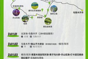 【旅行住宿】:全程共 6 晚,2 晚乌鲁木齐四钻住宿,1 晚花海房车营地,2 晚当地舒适型住宿,1 晚那拉提民宿(默认双人间拼住,不提供 3 人间,如不拼需补房差);