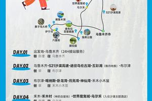 其他提示:因新疆各景点间路途遥远,孕妇、75 岁以上老人不可报名(65 岁以上客人参团需签订免责协议且有家人陪同),2 岁以下儿童不建议报名。