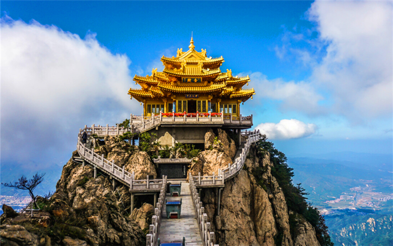 相传东周道家始祖老子曾在此山隐居修炼,故名老君山,是伏牛山主峰。海拔两千多米,有官殿及庙宇群落,古时这里被视为道教圣地。景区还有老子骑牛像和太上老君金像等当地著名标志物。