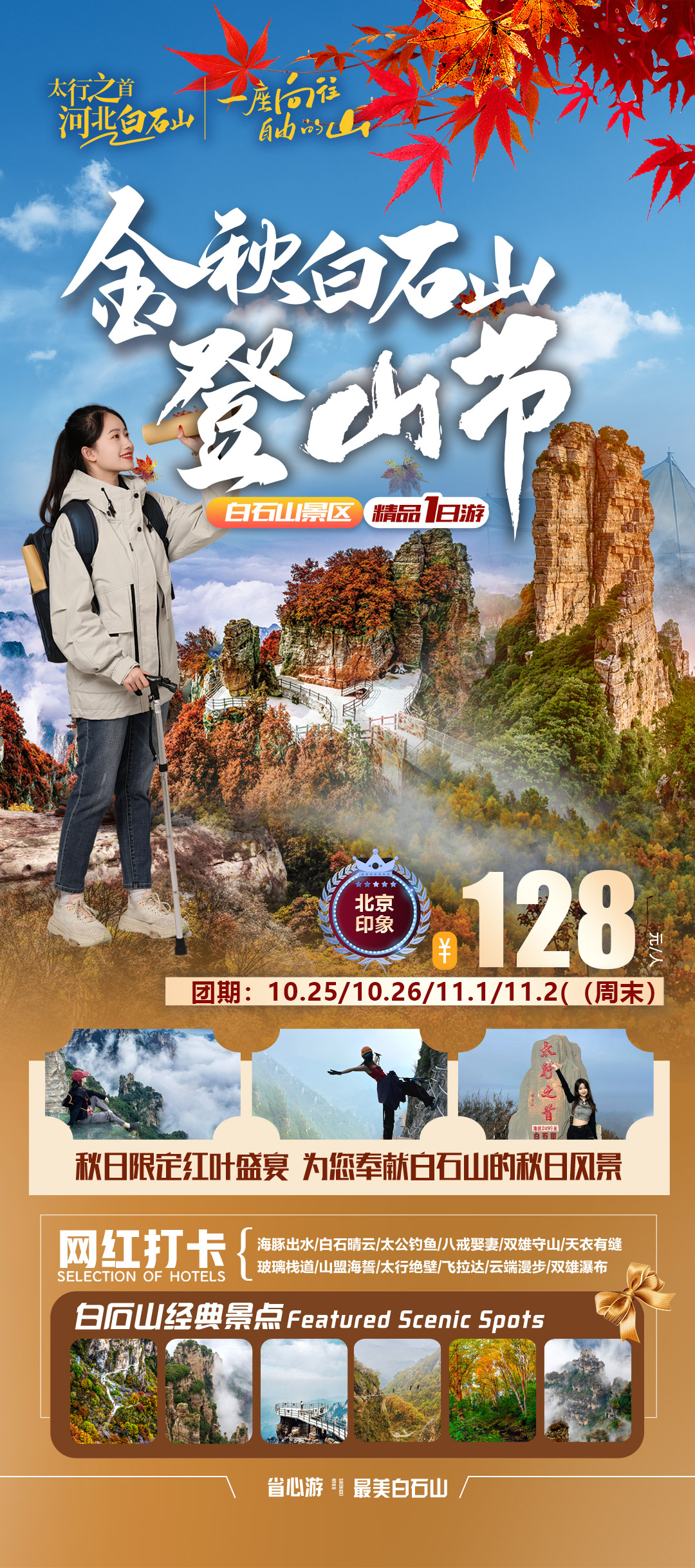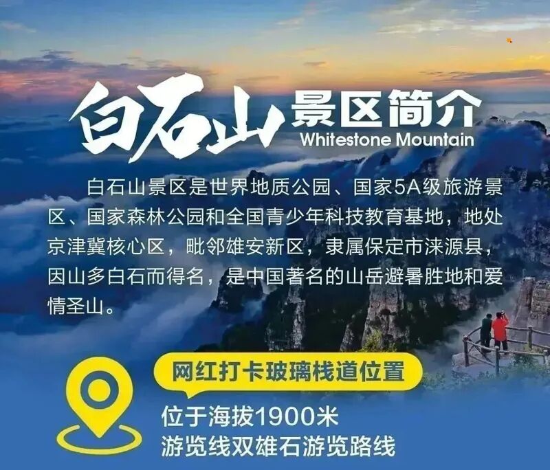 - 11:00|到达白石山景区,大家乘坐缆车到达山顶,在云端赏太行之首美景,看奇山怪石,中午云间午餐时间,尽情享受;下午继续欣赏美景,喜欢摄影的尽情创作,三步一景,五步成诗,十步入画,百步不胜在人间。