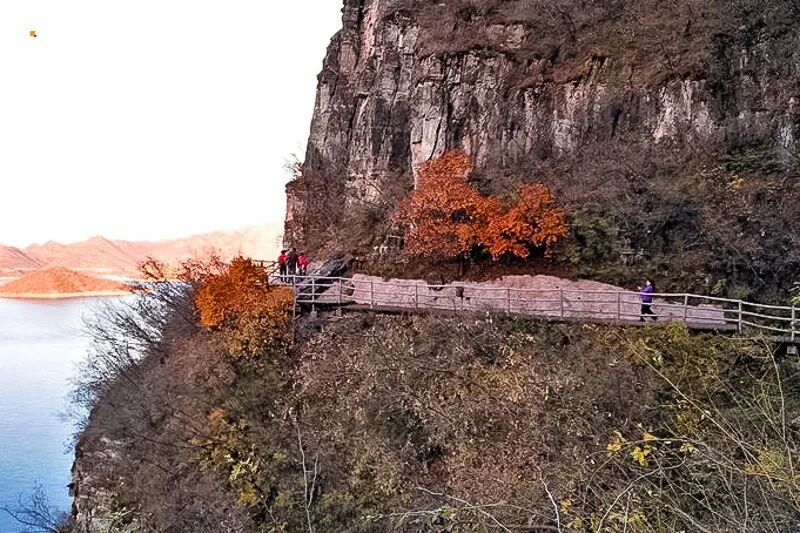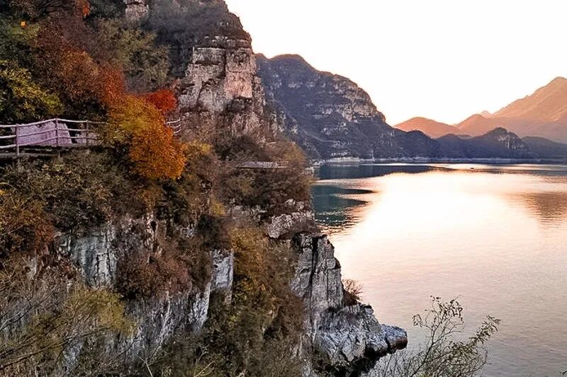 我们到达易水湖码头,一起坐船到湖中心去上高山栈道观看全景,逛长空栈道——赤壁拍摄外景地。易水湖风景区因可与漓江风光相媲美,故而被誉为“北方小桂林”。易水湖是利用四周高耸的山势而修建的一座人工湖,周围环境优美,清澈纯净,景色宜人。藤萝倒挂的悬崖峭壁,勾划出南国风光的桂林山水画,并且留下了七仙度国舅的美丽传说,可谓是欲知桂林风景,何必千里下江南。