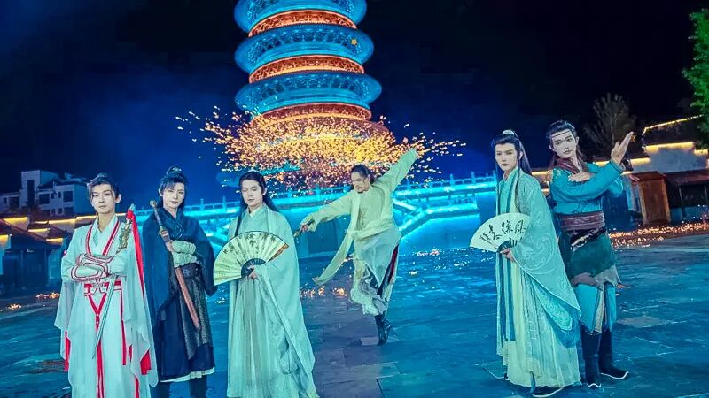徽市街情景表演,戏说武林、侠骨柔情、芙蓉茶馆、珍珑棋局、功夫茶馆、段誉传奇......让你随时随地感受一场穿越之旅。