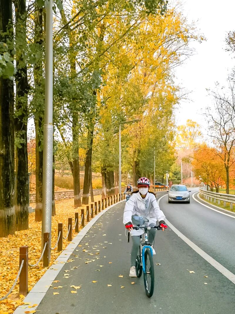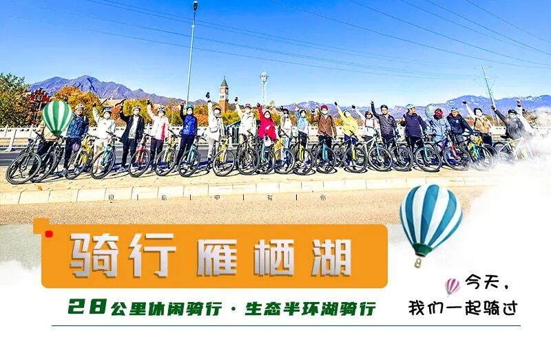- 10:30|到达雁栖湖自行车基地,领取自行车,检查车辆及护具,统一讲解注意事项。之后在领队的带领下按指定路线骑行,我们边骑边玩,感受秋日雁栖湖风景。
