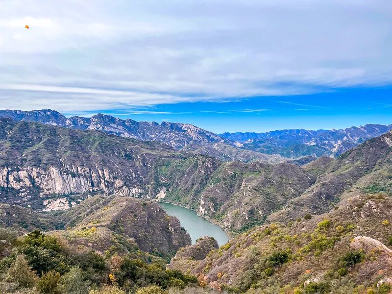该条线路难度适中,站在这里可以俯瞰有"北京雅鲁藏布大峡谷"之称的白河峡谷,首先进入视野的就是白河碧绿的水静静的流向远方,两边连绵起伏的山脉都披上了绿色的新装,一动一静,水的韵律和群山的起伏构成一幅绝美的动态写生画卷,不知不觉地就让人沉浸其中。这段野长城有好多地方需要手脚并用的爬,野趣味性足够,强度不大,不需要太专业的装备。站在“羊粪楼”看到密云水库的瞬间,心情豁然开朗。