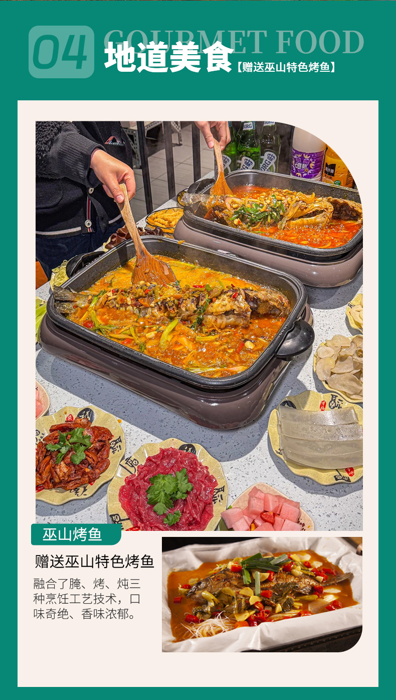 4.【餐饮】4个酒店含早+巫山烤鱼庆功宴(赠送餐食,不吃不退)