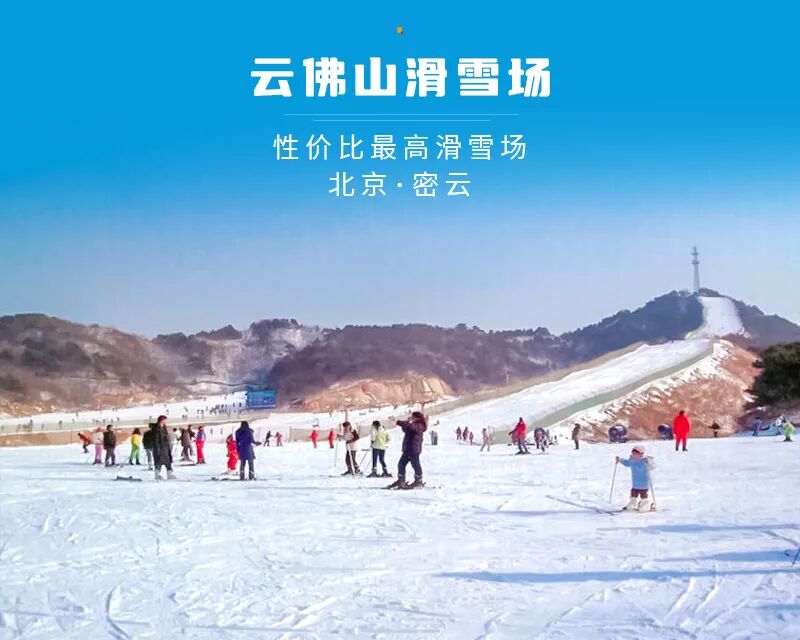 北京云佛滑雪场位于北京市密云区溪翁庄镇,总占地面积45万平方米,是华北地区规模较大、设施齐全的绿色滑雪场。场内有7条不同级别的雪道,国际标准长度的1000米高级雪道1条,坡度22度2条,300米至700米长的中级雪道,坡度17度4条,100米至300米长的初级雪道,坡度7度,可以满足不同滑雪爱好者的需求。