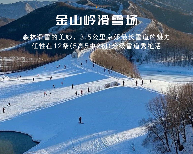 金山岭银河滑雪场是金山岭滑雪旅游度假区的重要组成部分,是少有的稀缺型专业滑雪圣地,主雪场是由设计过五届冬奥会比赛场地以及多个沿雪旅游度假区加拿大ECOSIGN公司规划设计。规划建设31条雪道,主峰海拔1750米,雪道最大落差可达650米,规划建设31条雪道,总长度约60公里,雪道总面积约160万平米;7条国际国内先进索道,可同时容纳2万人,雪场品质位居亚洲前列。今年雪季,金山岭银河滑雪场雪道分布更清晰,新增地形公园区、进阶练习区、道内刻滑区、趣味技巧区、高级练习区、入门练习区,清晰划分雪场布局,趣味性与专业性能充分满足,让滑雪体验更舒适。