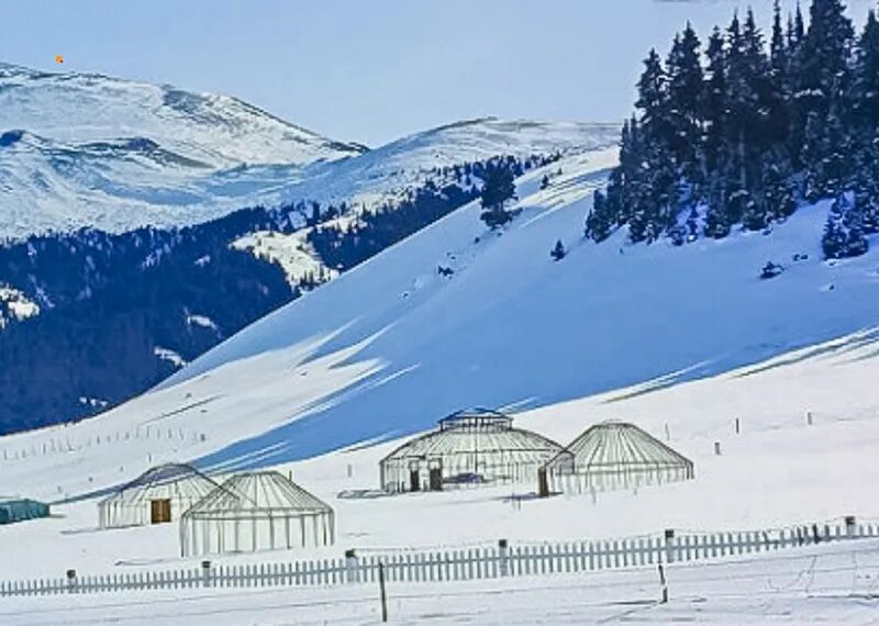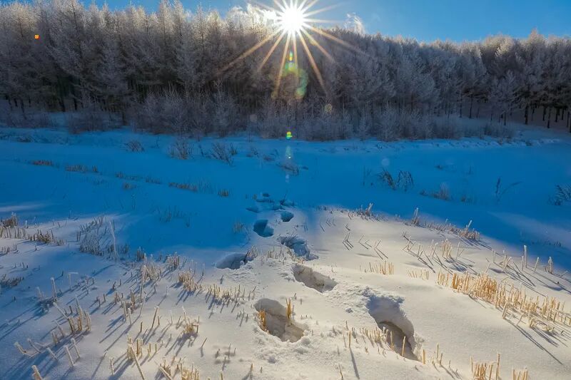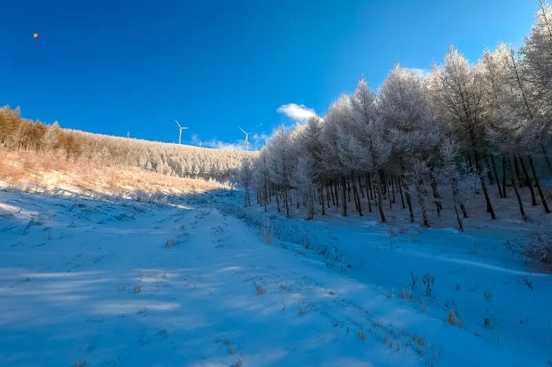 冬天白雪皑皑,一片北国风光,山上积雪数尺,整冬不化,区别于夏季的风景,但都超震撼。一场风雪过后,阳光明媚,登高遥望坝头,山峦森林,草地田间,一片白色景象,唯有公路被狂风吹得光滑如镜,突兀似一条黑色绸带,绵延百余公里。