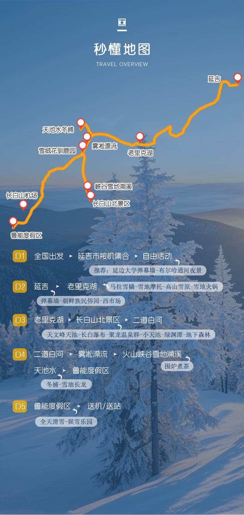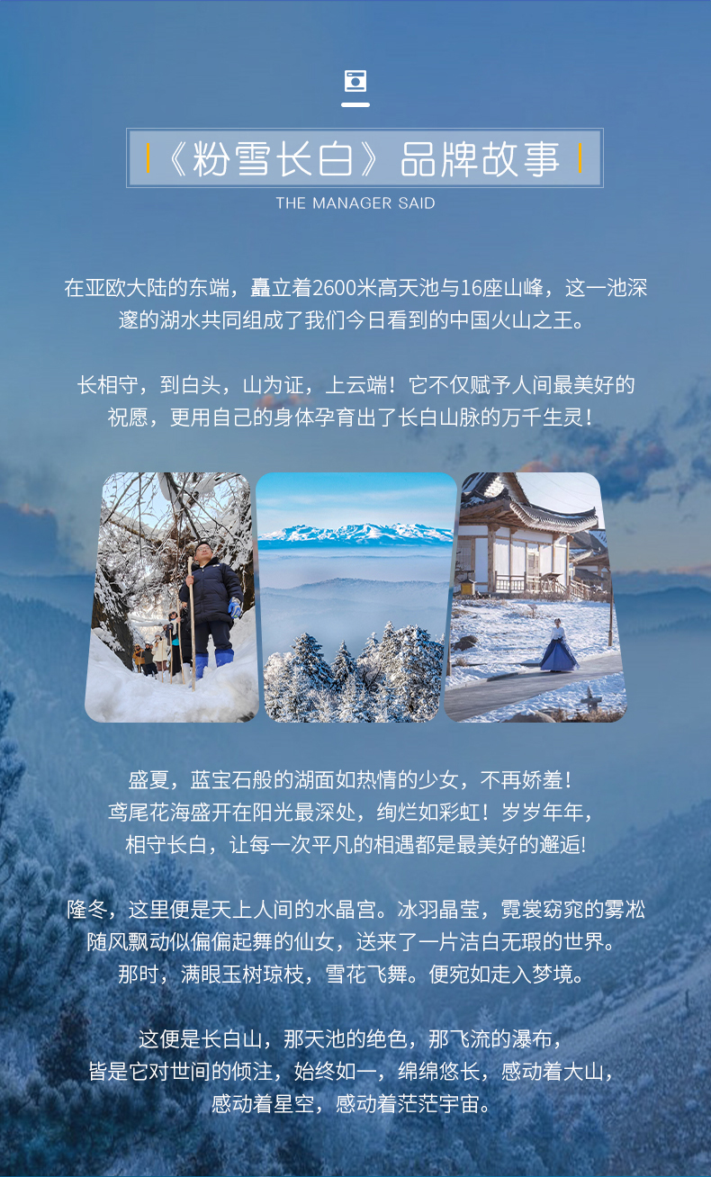 〖集散地点〗:集合吉林省延吉市,散团吉林省长白山机场/长白山高铁站