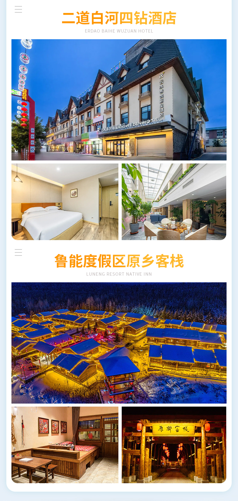 第四晚:长白山鲁能原乡民俗酒店或同等级