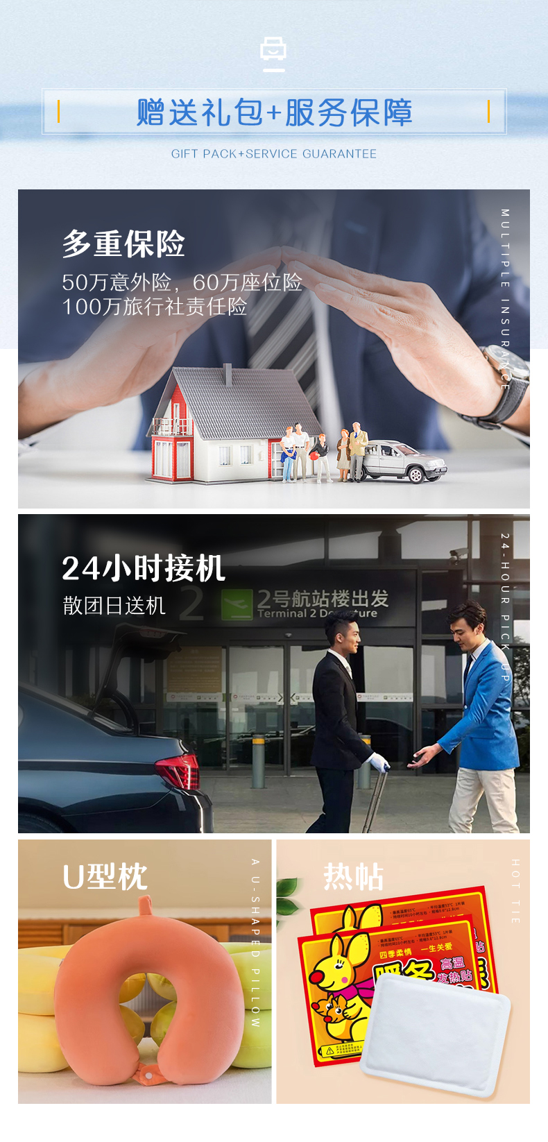【赠 送】:U型枕,10贴/人热帖,24小时接机,散团送机/送站服务;