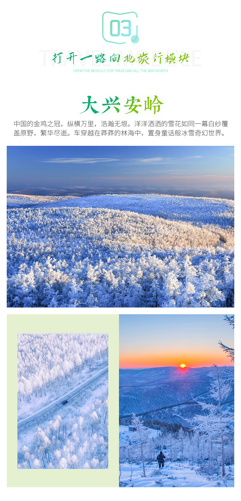 【特殊说明】:由于此产品游览区域隶属黑龙江省大兴安岭山区,经济发展缓慢,物资匮乏,旅游资源条件有限,无法与一、二线城市旅游资源比较,如遇相关问题敬请见谅!