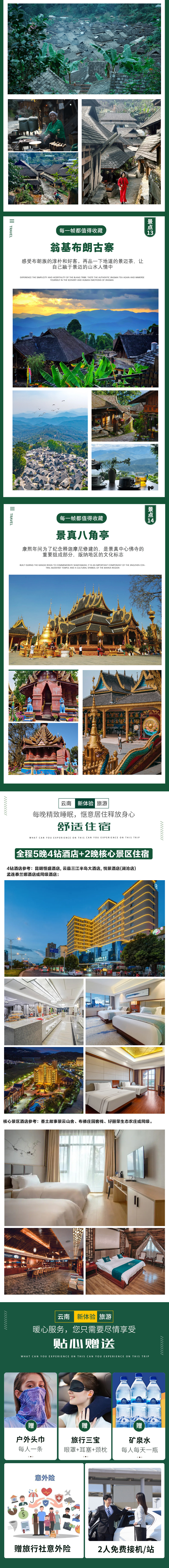 2. 【景点及门票】:哀牢山套票(金山原始森林+石门峡),南恩瀑布,无量山樱花谷门票,司岗里,国画长廊,葫芦小镇,沧源崖画门票,永和口岸,翁丁村门票,佤族班鸽村及电瓶车,娜允古镇,博航老寨,勐梭龙潭,龙摩爷门票,景迈山,糯干古寨,翁基千年古寨,景真八角亭门票;