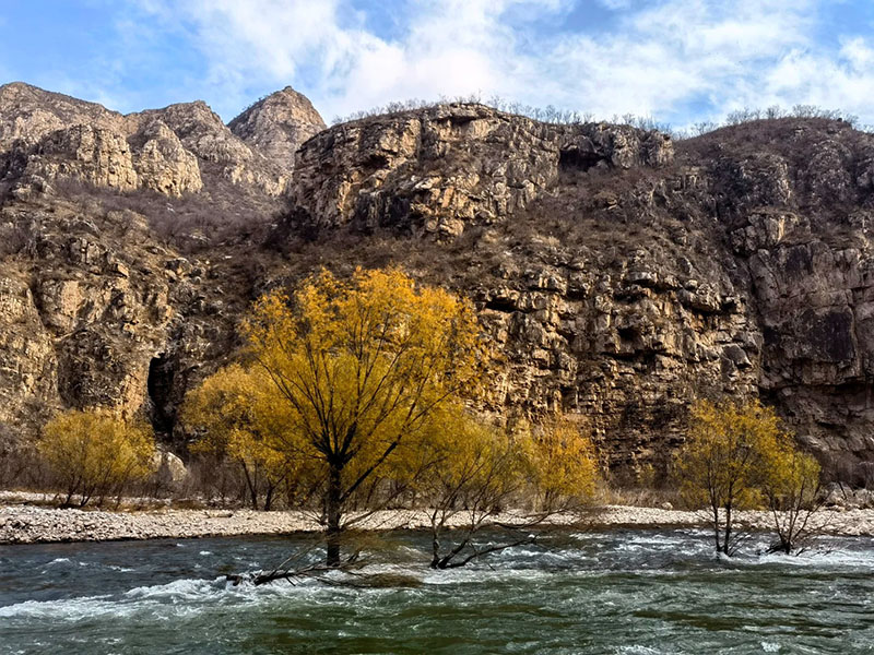 永定河大峡谷是我国大江大河当中,屈指可数的大峡谷之一。从官厅大坝到三家店水闸,永定河蜿蜒在万山丛中,“万迭山横翠,千盘河曲长”,峡谷长达108.7公里。路线沿斋幽路向北,靠近幽州村开始,到官厅水库止,也是永定河峡谷精华所在。峡谷两岸悬崖峭壁,岩石层次分明,丰沙铁路经过。途中我们会走过幽州古道,一条在半山开凿的山路,古时的条件有限,全凭人工开挖,能够在山体中间凿出这么一条路来,可见工程量的浩大。现今的幽州古道很多地方已经铺上了水泥路,这条行进于山体之间的挂壁公路,仅能容纳一车通行,委实惊险刺激!