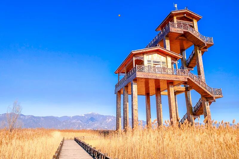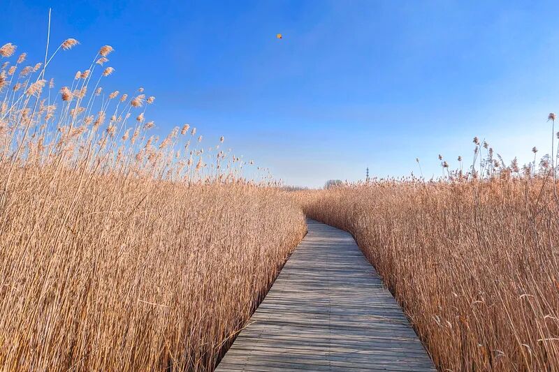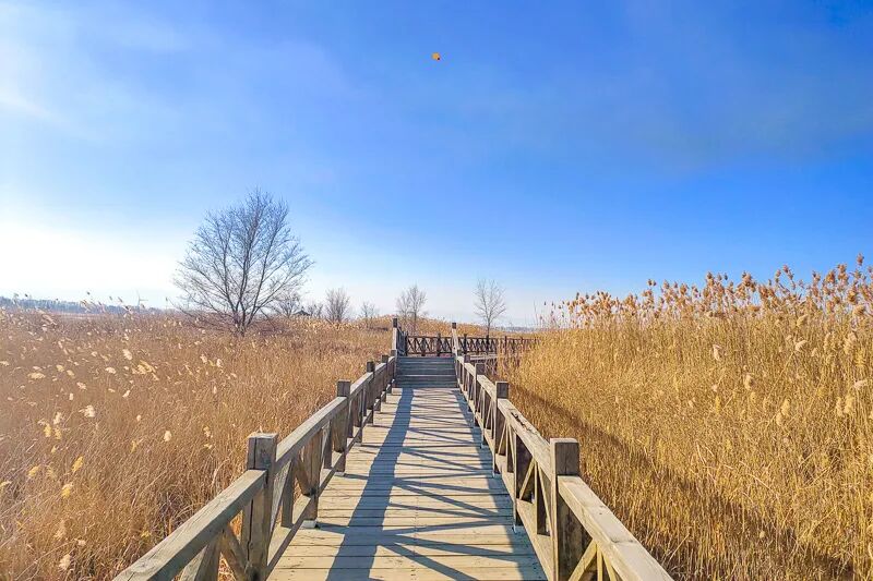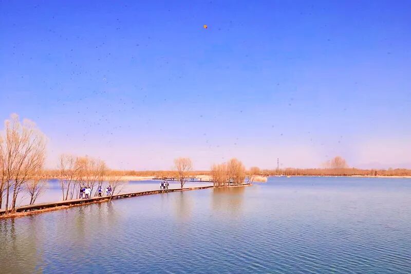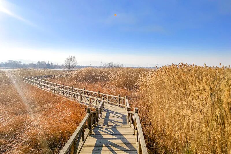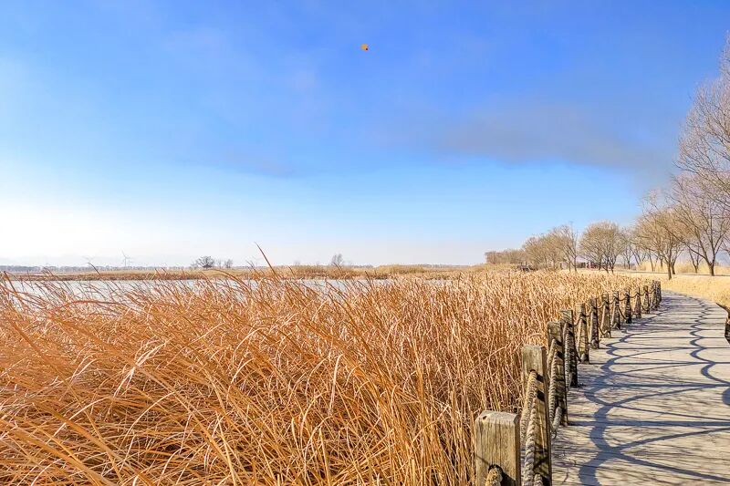 这里也是华北地区最大的湿地公园。水草芦苇丰茂,风吹过的时候,非常漂亮,公园沿途有亲水木站台,鸟岛,湿地观景台,望湖楼,西保护站,观鹤台,湿地百草原等特色景点。