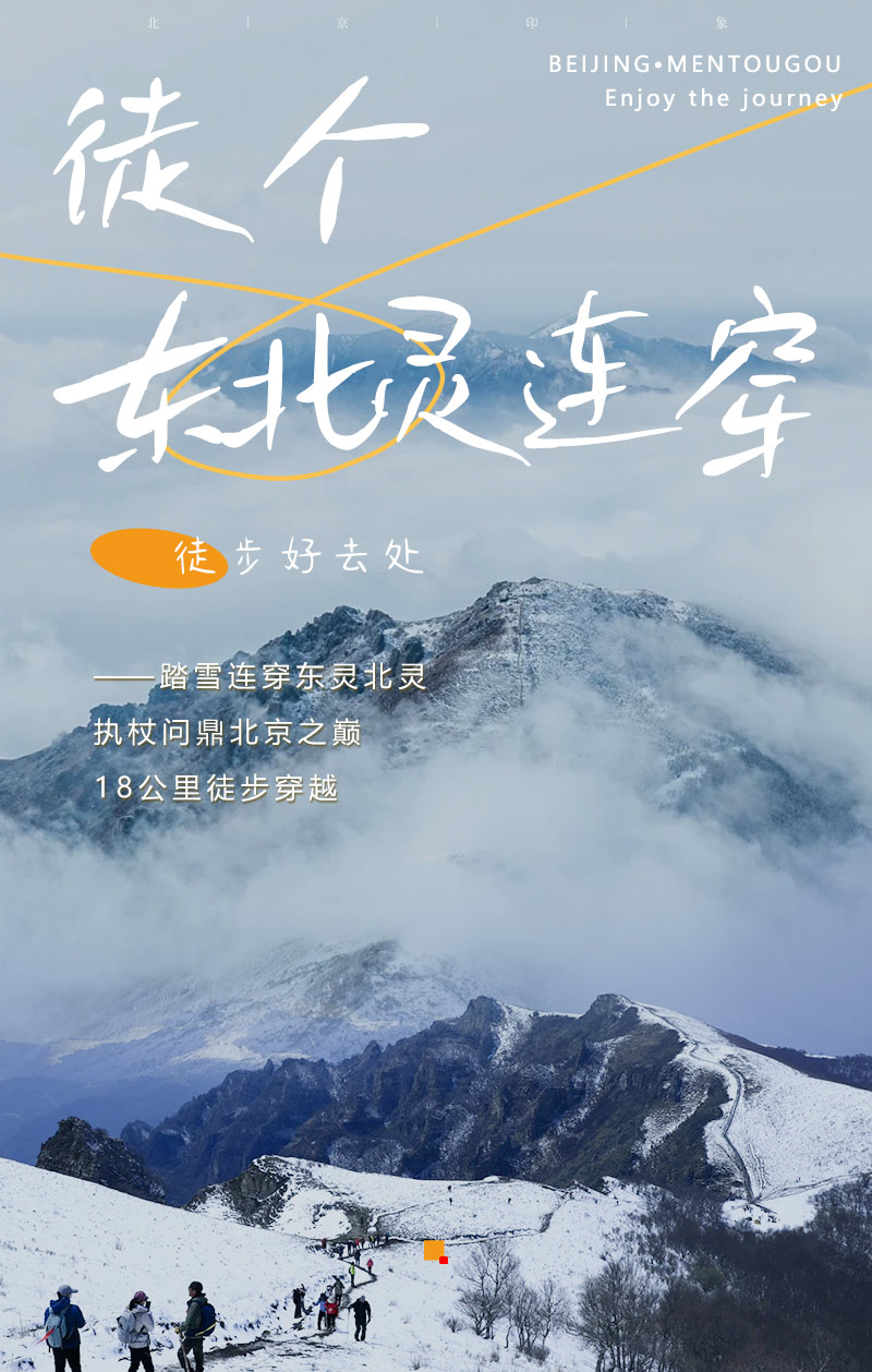 户外徒步线路(非休闲):东灵山-北灵山连穿徒步,全程约18公里,累计爬升约1300米,全程耗时约7小时,户外强度等级1.2,适合18-55周岁身体健康、有一定户外经验者参加。
