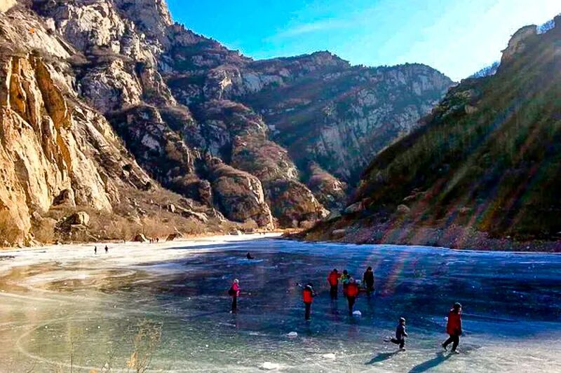 - 10:00|到达白河峡谷,开始漫步在白河峡谷大自然的冰面上,体验冬季最美冰上之旅;仅是在山野间踏冰徒步的体验就足以吸引人了,在白河徒步还有其他的惊喜,比如河流两旁的陡崖峭壁、沿途的村落和茅草屋、荡漾的芦苇、洁白的冰瀑。