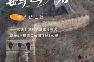 鹞子峪 - 撞道口环线全程约 8 公里,是一条融合自然与历史魅力的徒步路线。起点鹞子峪城堡古朴宁静,城墙遗迹诉说往昔故事。沿途攀升至长城,可赏壮丽敌楼,砖石斑驳见证岁月沧桑。行走于长城之上,视野开阔,山峦连绵,四季景色各异。后半段从撞道口下山,途中植被丰富,春夏野花烂漫,秋冬层林尽染。此环线难度适中,既满足户外爱好者对徒步挑战的追求,又能让大家沉浸式感受长城的雄伟与历史文化底蕴。