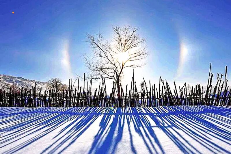 - 上午|早餐后我们换乘越野车前往乌兰布统的小河口欣赏树挂(也叫雾凇)在低温的大地结晶,这就是美丽的冰花,大量的冰花落在树上,牧场的护栏上,电线上,美景从此出现。这就是大家期待的雾凇(雾凇视受天气影响较大,不一定能看到,如当天没有我们换其它地方玩耍)。