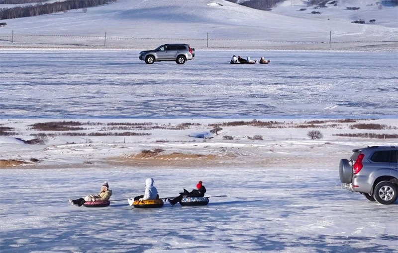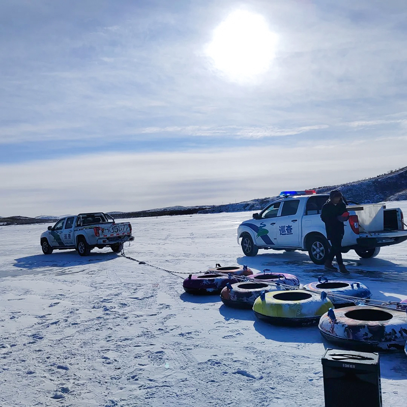 看完日出之后体验刺激满满的越野车冰上漂移,冰上越野串串烧。越野车拉动雪圈,在雪地上呼啸而奔,体验真正的速度与激情。我们可以大声尖叫,在此刻的疯狂中放松身心,感受最纯粹的畅快!