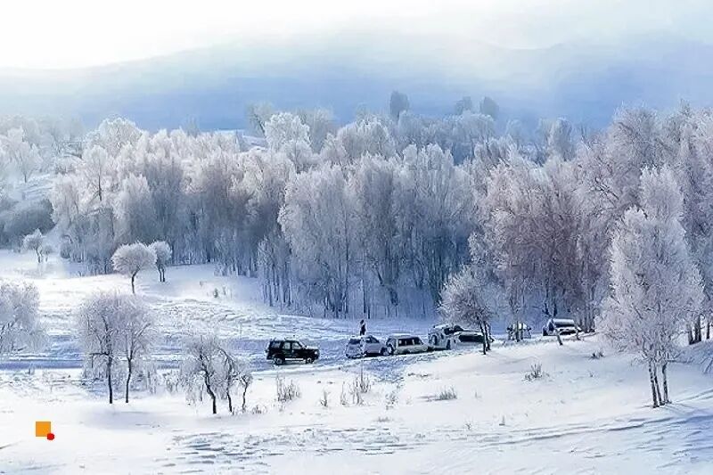 上午|看完日出后,前往『透风沟』。透风沟是一片藏匿于雪山之间的小河沟。在透风沟一旁的山坡之上,俯瞰这一片被冰雪覆盖的溪水山沟,远方的牛羊围栏,以及被冬日寒风吹拂和越野车碾压而过的雪地纹路。- 之后我们前往『南井』冬季的南井拍雪地水墨丹青,白桦倒影。蔡树分布匀称,对面看上去,就像故意做上去的一样,美轮美奂。